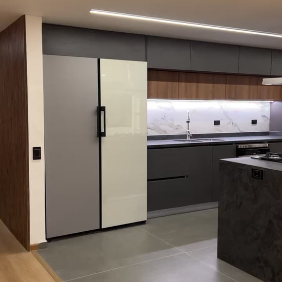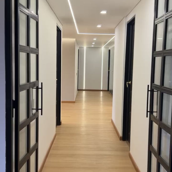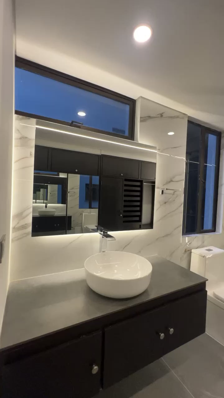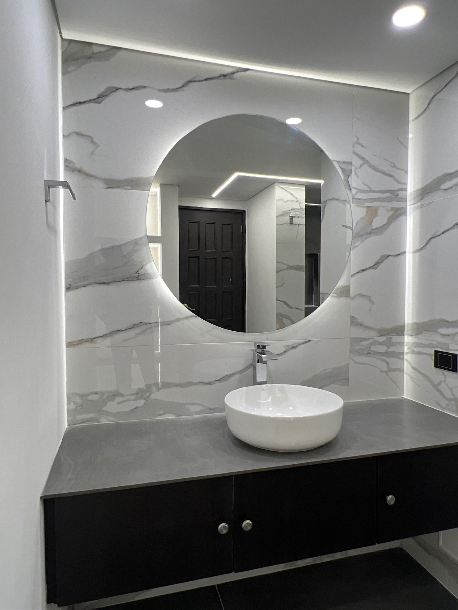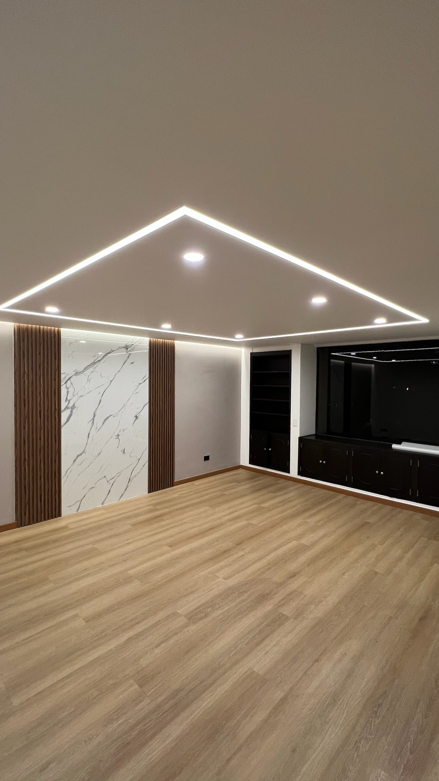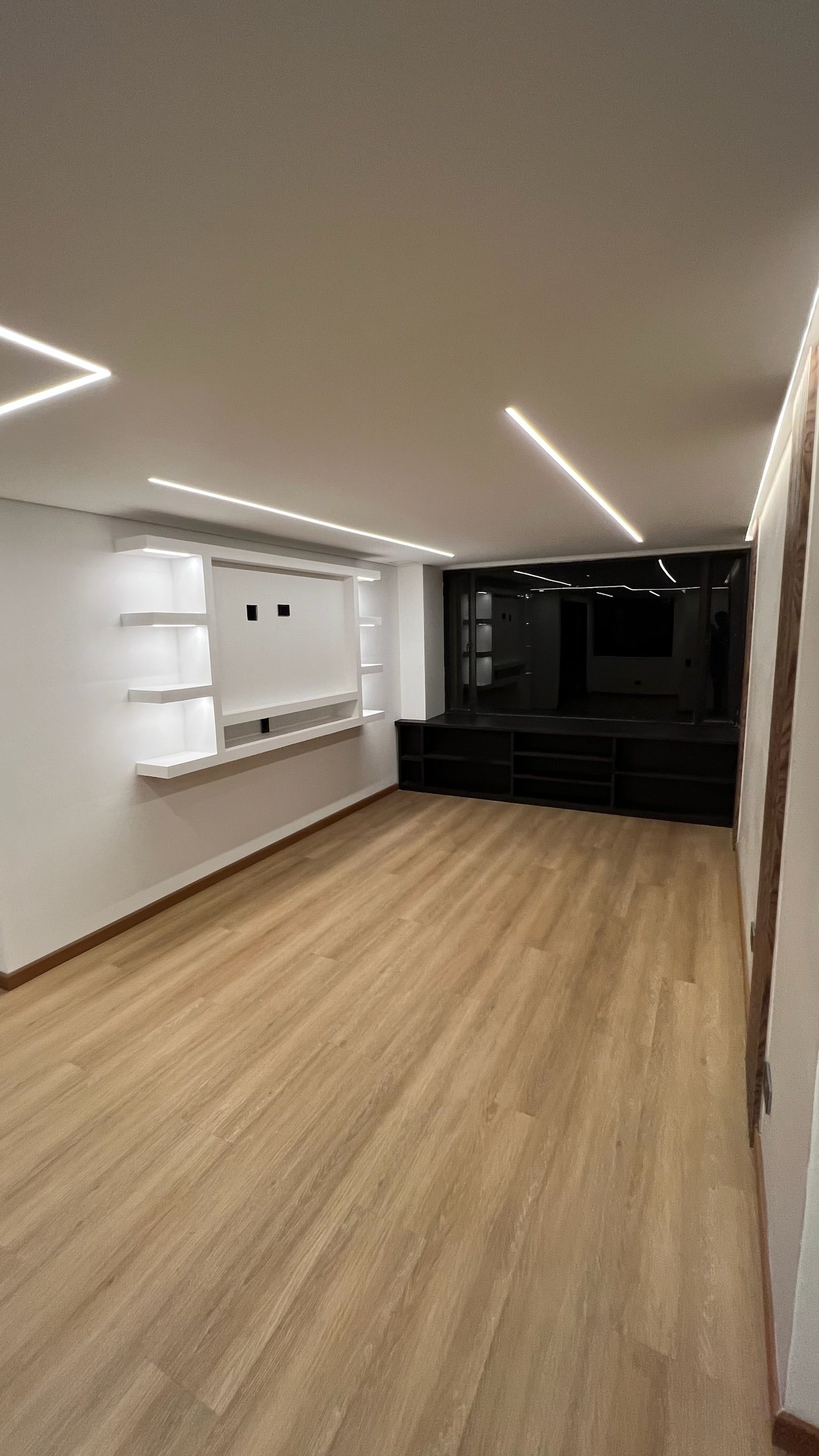 Este apartamento de 260 m² fue completamente renovado, fusionando lujo y modernidad. La transformación incluyó demolición de muros, renovación de redes, iluminación LED y acabados de alta calidad en pisos, paredes y carpintería. La cocina, con su isla de piedra sinterizada y detalles en madera, se convierte en el corazón del hogar, combinando elegancia y funcionalidad.