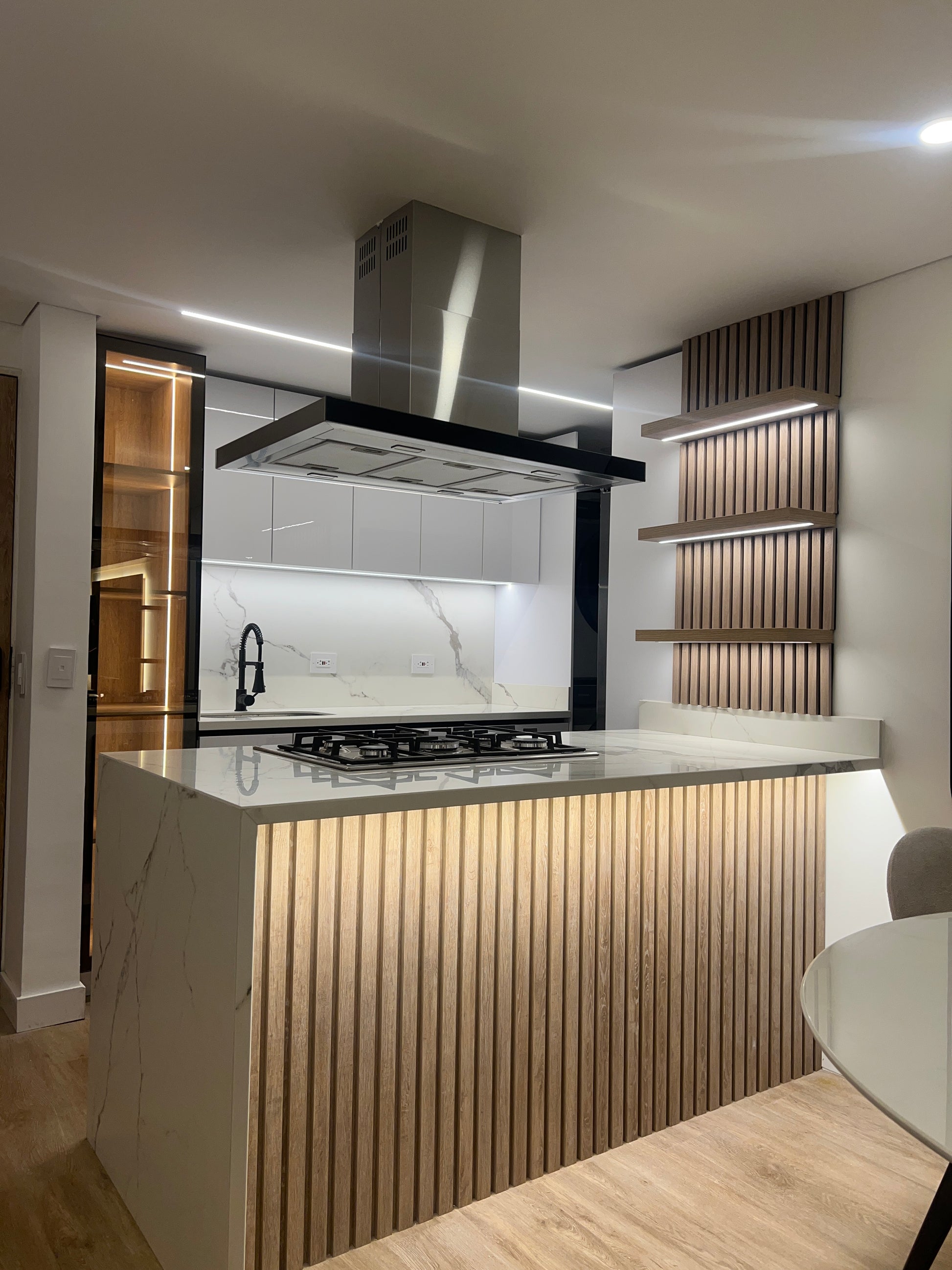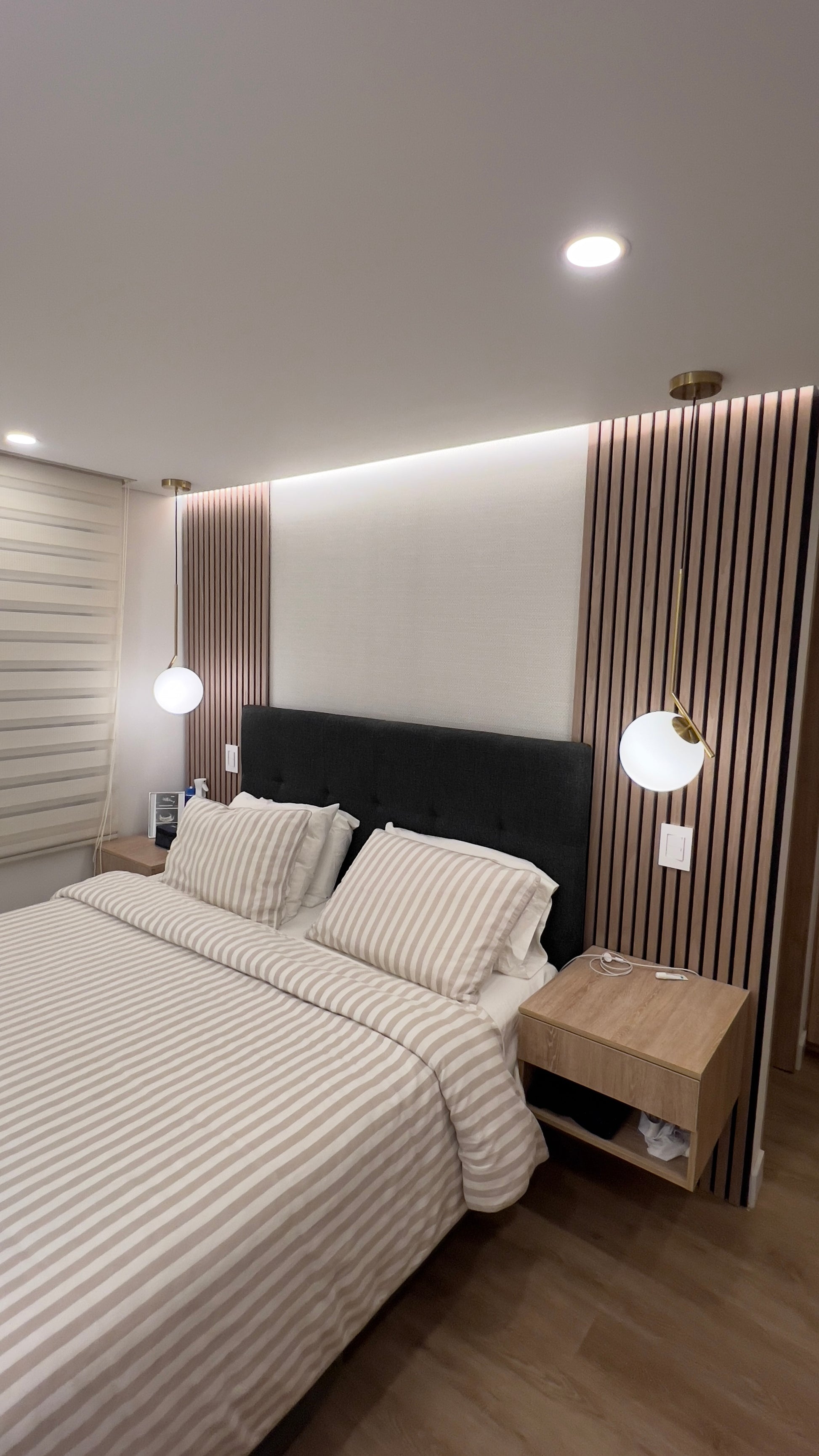Este apartamento de 63 m² y 30 años de construido fue completamente transformado con un diseño moderno y funcional. La renovación incluyó la redistribución del espacio, actualización de redes eléctricas, hidráulicas y de gas, y acabados en estuco y pintura de alta calidad. Se instalaron pisos en porcelanato y SPC, junto con paneles WPC para un toque contemporáneo. La iluminación LED y domotizada resalta cada detalle arquitectónico, mientras que la carpintería y los muebles a medida optimizan el espacio con elegancia y confort.